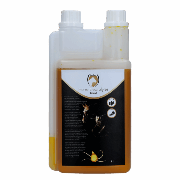 Excellent Horse Electrolytes Liquid is een aanvullend diervoeder (dieetvoeder) voor paarden ter compensatie van verlies aan elektrolyten bij hevig zweten.